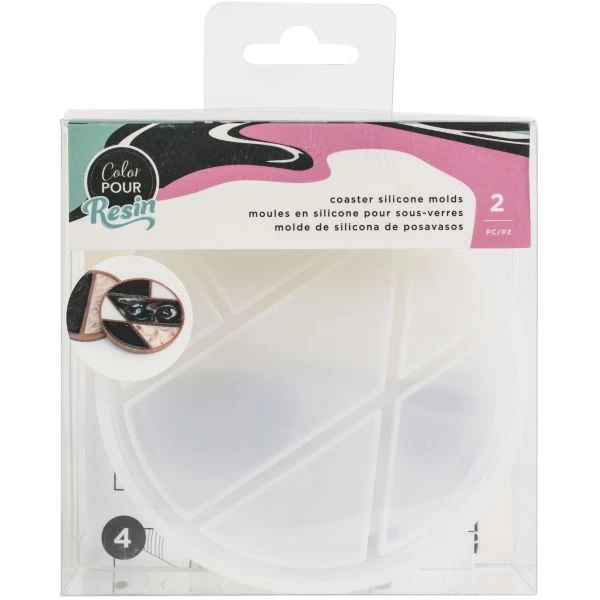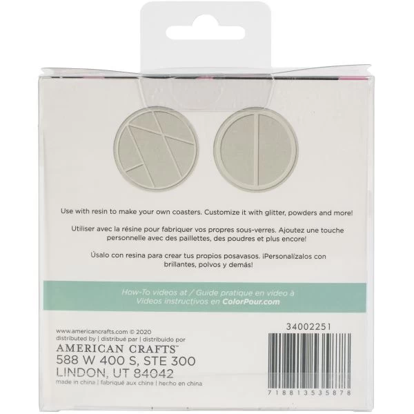 American Crafts Color Pour Resin Mold 2/Pkg – Easily create unique resin coasters with this mold! It’s great for making the perfect coaster shapes for home decor and more. First mold the base and allow it to cure for 24 hours. Then add the filler and allow the coaster to cure for another 24 hours. Pair this mold with Color Pour Resin dyes and mix-ins (sold separately) for unique projects every time. This 4.8×1.3×5 inch package includes one silicone coaster mold. Imported.