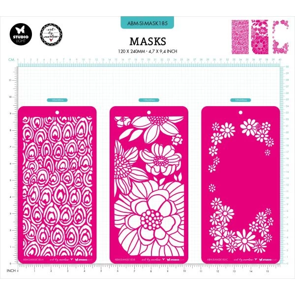 Art By Marlene Eternal Trio 4.33″X8.38″ Stencil – Create beautiful designs with the Eternal Trio mask from the Signature Collection, designed by Art By Marlene for Studio Light. This mask set features 3 floral inspired designs including a small flower border, a collection of large flowers and an oval pattern. Pair with any of the Art By Marlene Signature Collection Paper, Stamps or Dies for an array of artistic cards, scrapbooks, journals and more.