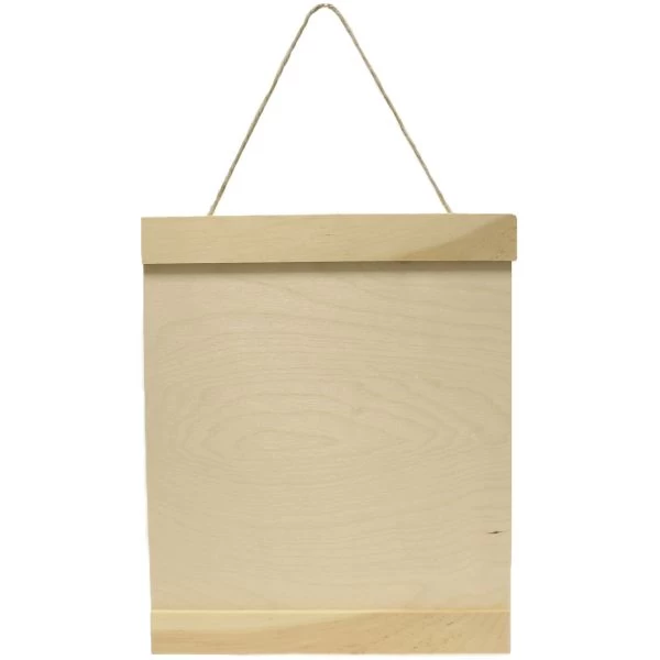 Art Display With Pine Rails 12″X12″ – Create your own fine art display with this ready to hang and pre-assembled surface. The baltic birch insert is the perfect canvas for painting, hand lettering, photo displays, or other mediums. The pine rails can be painted or stained. Hang the jute string on a small nail or hook. This package contains one 12×12 inch art display with pine rails. Made in USA.