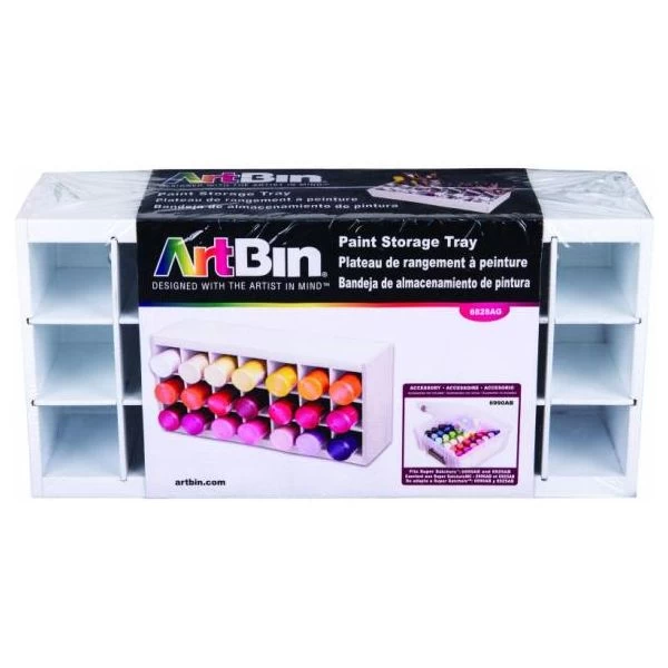 ArtBin Paint Storage Tray – ArtBin-Paint Storage Tray: White. This storage tray is perfectly sized to hold most 4oz paint bottles, but is also perfect for paint tubes, brushes and more. Trays are stackable and can be wall mounted. Fits in Super Satchels 6990AB and 6925AB (sold separately). This package contains 6×12-1/2×3-1/2 inch paint storage tray with twenty-one 1-1/2×1-1/2 inch square openings. WARNING: This product contains chemicals known to the state of California to cause cancer, birth defects or other reproductive harm. Do not mouth or chew. For more information go to www.P65Warnings.ca.gov. Imported.