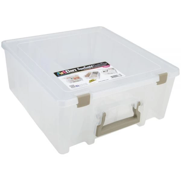 ArtBin Super Satchel Double Deep – ART BIN-ArtBin Double Deep Super-Translucent w/ Taupe Handle. Extra depth allows for storage of larger bulkier supplies. Use Open Core (with out dividers) for quilt squares, works in progress, patterns, books and more. Customize using dividers for charm packs and fat quarters. Also accommodates the 6901AB thread tray (not included). Overall measurements: 15-1/4×14-1/4×6-1/2in. Made in USA.