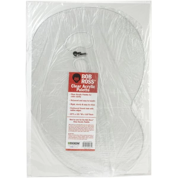 Bob Ross Plastic Palette – Specially designed by Bob, this sturdy clear plastic palette allows you to see true color, with smooth and roomy surface for proper loading of brushes and knives. Non-porous to prevent absorption of oil from paint: durable and lightweight. This package contains one 15.25×23 inch plastic palette. Imported.
