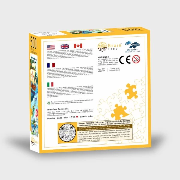 Brain Tree Jigsaw Puzzle 500/Pkg 19.5″X14.5″ – Mermaid island is a jigsaw puzzle that is crafted for average puzzlers where they get to learn puzzling with ease, the art itself is a simple and fun part where the puzzler will enjoy each and every second involved with the solving. the whale , dolphins and the island are beautifully designed where it is a treat for puzzlers to have a look at it. This package contains 500 jigsaw puzzle pieces. Imported.