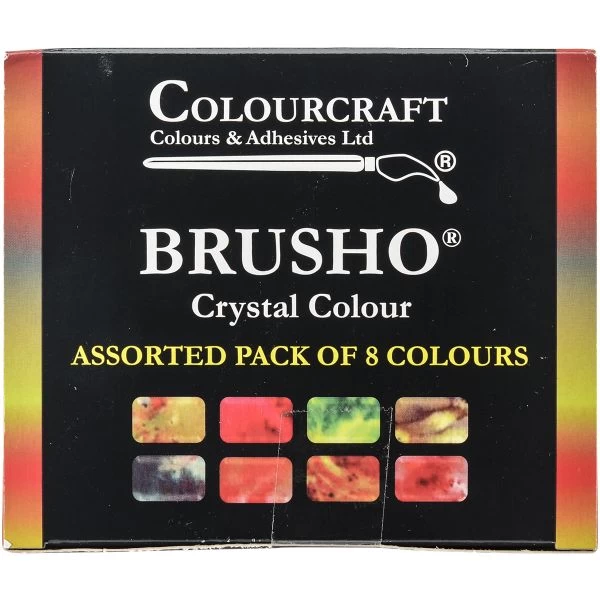 Brusho Crystal Colours Set 8/Pkg – Colorfin-Brusho Crystal Colors Set. These are amazingly versatile watercolor ink crystals that can be used in a myriad of different ways. They can be used on paper, canvas or even wood. Sprinkle them directly on a wet substrate and watch intriguing organic patterns appear almost like magic. Or sprinkle on a wet brush, painting knife, or texture tool to create a variety of effects. You can dissolve them in water and apply them in a spray bottle, or add them to wax paste or gel mediums for body. This package contains eight crystal colors and one instruction sheet. Non-toxic. Acid free. Imported.