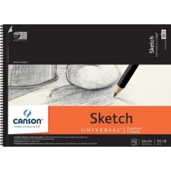 Canson Universal Spiral Sketch Book 18″X24″ – CANSON-Universal Sketchbook. This paper pad features a versatile surface for a variety of dry media and fine texture. Plus the pages are perforated for easy removal. This package contains one 24x18inch spiral sketch pad with thirty-five sheets of 65lb paper. Acid free. Made in USA.