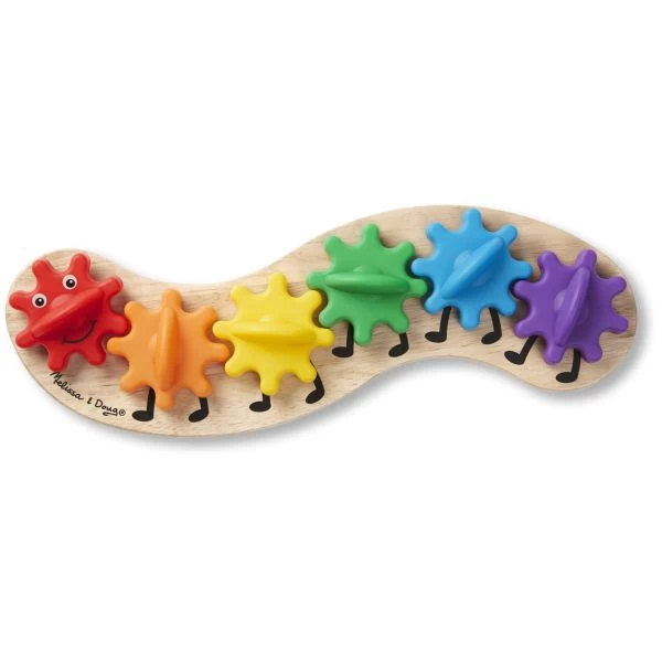 Caterpillar Gear Toy – Turn the gears slowly and watch each interlocking segment move the next, or see how fast your child can make the caterpillar crawl on the wooden base. This rainbow-colored gear toy is hands-on fun at any speed! With their bulky, notched shape, the colorful gears are easy for children to fit onto the color-coordinated pegs . . . then rotate, remove and rearrange. Toddlers will be fascinated by the colors and movement of this charming toy. This 6.1x2x14.1 inch package contains one caterpillar toy. Imported.