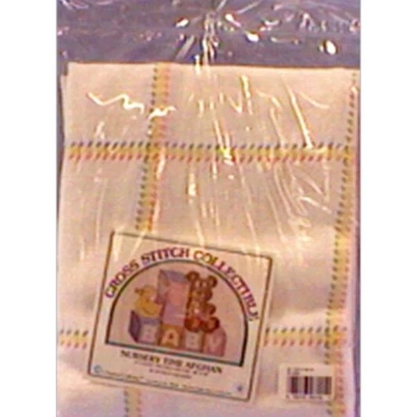 Charles Craft Nursery Time Afghan 14 Count 38″X38″ – CHARLES CRAFT-Nursery Time Baby Afghan. This soft afghan is perfect for baby! It is made out of 100% cotton and features a simple twill weave around twenty-five 6-inch square 14-count cross stitch blocks. Nine nursery rhyme themed stitching charts are included and can be placed on the blanket either as shown in the layout or according to your own choosing. This package contains one 38×38 inch afghan in Antique White, nine charts, and instructions for stitching and fringing. Made in USA.
