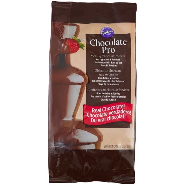 Chocolate Pro Fountain & Fondue Wafers 2lb – This chocolate is made from premium ingredients for superior melting and a delicious chocolate taste. Ideal texture and rich flavor for making dipped desserts or molded candies. No tempering needed! This package contains 2 pounds of chocolate wafers. Made in USA.