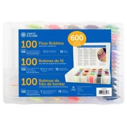 Coats & Clark Storage Box and Floss Bobbins 100/Pkg – Perfect for hand embroidery and a variety of creative projects such as cross stitch, needlepoint, friendship bracelets, tassels and general thread crafts. Plastic storage box with secure snap closure lid. This package contains 100 pre-wound embroidery floss bobbins and 10 empty bobbins. The six strand embroidery floss comes in a variety of solid, variegated and neon shades. Contents: 100% cotton and polyester. Imported.