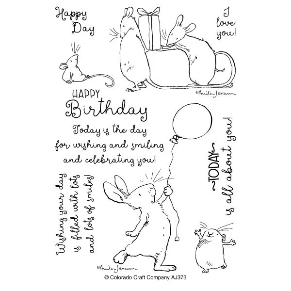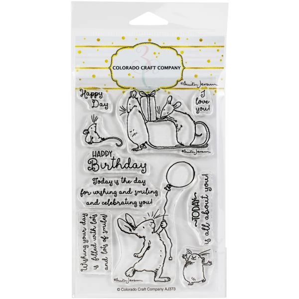 Colorado Craft Company Clear Stamps 4″X6″ – Wish those you love the happiest of birthdays with the Birthday Wishing Clear Photopolymer Stamp Set featuring the illustrations of Anita Jeram for Colorado Craft Company. The set includes clear photopolymer stamps with a bunny holding a balloon, mice giving a gift and a little hamster. This 7.5 x 4.5-inch package includes the Birthday Wishing stamp set measuring 4 x 6 inches. It includes 10stamps, 4 images and 9 sentiments. The largest stamp is 2.5 x 3.5 inches and the smallest stamp is 0.87 x 0.62 inches. The stamps can be used with the coordinating die set sold separately (AJ374-D). All of Colorado Craft Company’s products are manufactured in the USA.