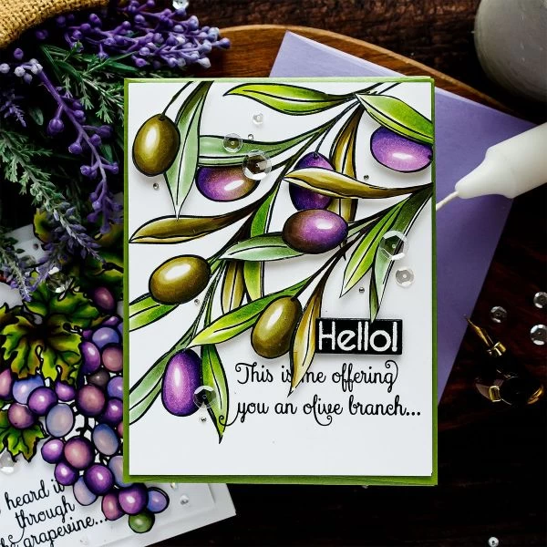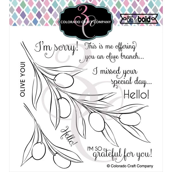 Colorado Craft Company Clear Stamps 6″X6″ – Extend an olive branch of love with the Olive Branch Clear Photopolymer Stamp Set from the Big and Bold Collection by Colorado Craft Company. The set includes clear photopolymer stamps with two olive branches. This 6.5 x 7.5 inch package includes the Olive Branch stamp set measuring 6 x 6 inches. It includes 9 stamps: 2 big and bold images and 7 sentiments. The largest stamp is 7.25 x 3 inches and the smallest stamp is 1 x 0.6 inches. The stamps can be used with the coordinating Olive Branch die set sold separately (BB562-D). Sentiments included in the set: This is my offering you an olive branch, I missed your special day, I’m so grateful for you, I’m Sorry, Olive You, and Hello. Made in the USA.