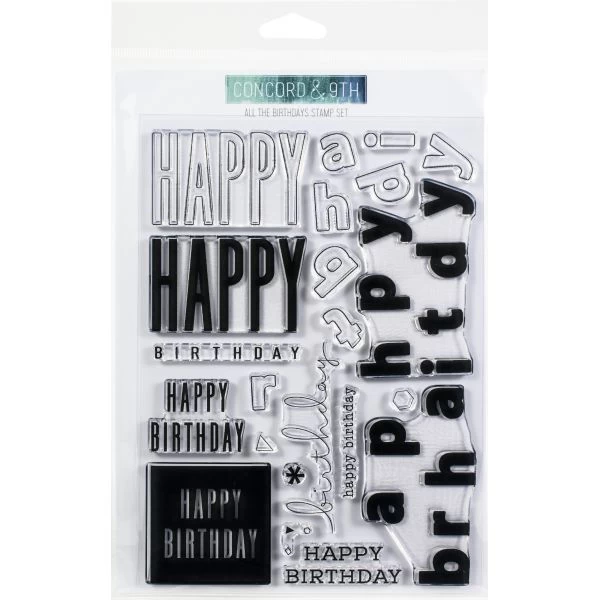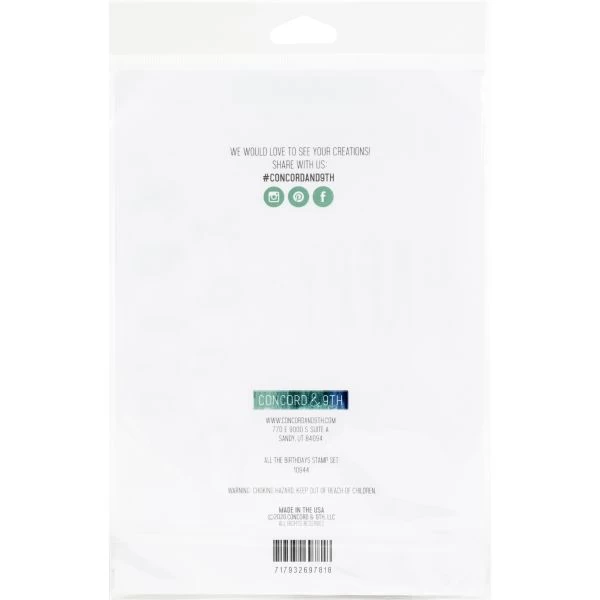 Concord & 9th Clear Stamps 6″X8″ – Add wonderful images and phrases to cards and more with these clear stamps! This package contains All The Birthdays: a set of 20 clear stamps on one 6×8 inch backing sheet. WARNING: Choking Hazard. Not suitable for children under 36 months. Made in USA.