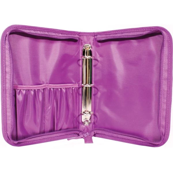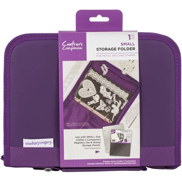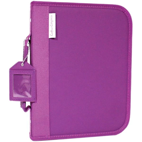 Crafter’s Companion Stamp & Die Storage Folder – Safely store dies, stamps and craft supplies in the three-ring binder. It works with Crafter’s Companion Magnetic Die and Stamp Storage Panels (CC-MAGSTOR-SM3); sold separately. The binder is purple with a convenient handle and secure wrap-around zipper. The inside includes a pocket with three sections for tools or other craft items. The three rings open easily by pulling them apart to add the storage panels and additional storage. The binder measures 8.5 x 11.5 x 1.75 inches with handle. A 3 x 2 inch luggage tag with clear window hangs from the handle with removable ball chain. Imported.