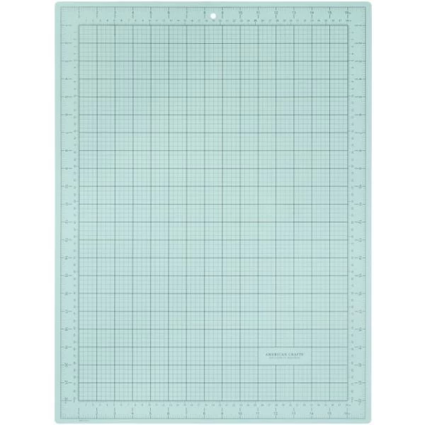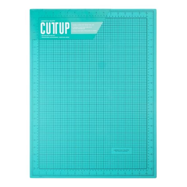 Cutup Self-Healing Mat – This self-healing cutting mat is great for both fabric and paper crafters. It is ultra-thick and can be used with rotary cutters, blades, and setting tools. The double-sided surface not only gives extended life to the mat but also provides versatility in cutting for you. One side has white grid lines while the other has black which ensures optimum visibility when cutting either light or dark papers or fabrics. There are rulers on all four edges with 1/8 inch and 1 millimeter increments. The cutting grid itself has horizontal and vertical lines every 1/4 inch. Overall dimensions of the mat are 23-5/8x 17-3/4 inches, the cutting grid measures 23×17 inches. This package contains one American Crafts Cut Up Self-Healing Mat. Imported.