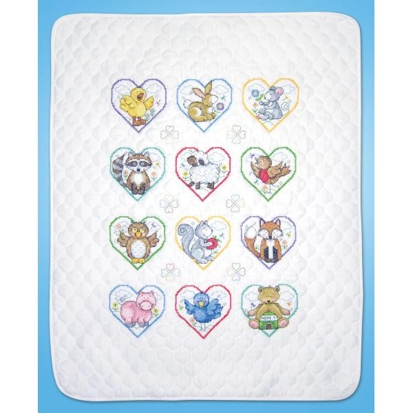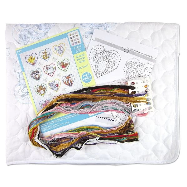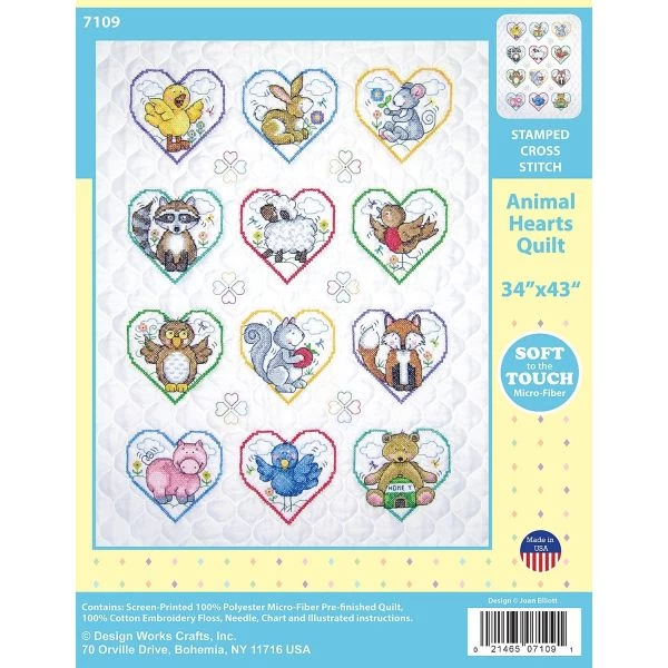 Design Works Stamped Quilt Cross Stitch Kit 34″X43″ – Creative designs and quality products are put into each kit. This package contains 100% polyester microfiber pre-finished quilt, 100% cotton floss, one needle, one chart and instructions. Design: Animal Hearts. Finished dimensions: 34×43 inches. Made in USA.