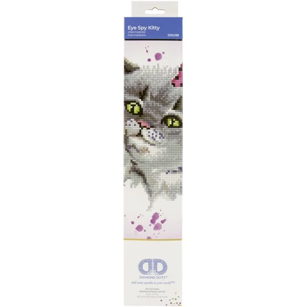 Diamond Dotz Diamond Art Kit 12.6″X12.6″ – Quick, easy and fun to do! Just use the Diamond Dotz Stylus to pick up a dot and place it onto the matching square on the sticky print. This package contains one 15.7×15.7 inch piece of high quality colors printed fabric, Diamond Dotz, one stylus, one craft tray, one wax caddy and multi-lingual instructions. Design: Eye Spy Kitty. Design Size: 12.6×12.5 inches. Imported.