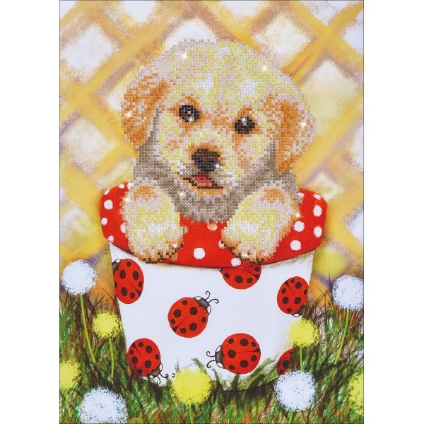 Diamond Dotz Diamond Art Kit 15″X19.5″ – Quick, easy and fun to do! Just use the Diamond Dotz Stylus to pick up a dot and place it onto the matching square on the sticky print. This package contains one 15×19.6 inch piece of high quality color printed fabric, Diamond Dotz, one stylus, one craft tray, one wax caddy and multi-lingual instructions. Design: Pup In Pot. Design Size: 11.8×16.5 inches. Imported.