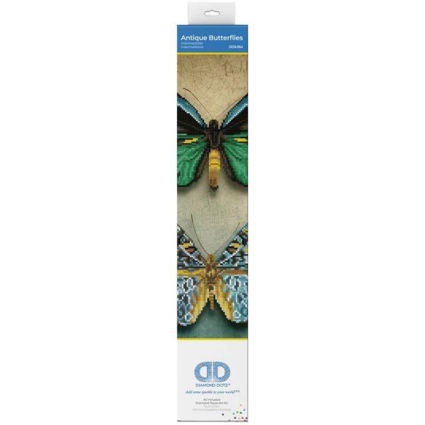Diamond Dotz Diamond Art Kit 20.3″X14.6″ – Diamond Dotz is a phenomenal new craft that is quick, easy and fun todo. Your design is created with Diamond like facets that shimmer inthe light. Using the Diamond Dotz stylus, simply pick up a facet andplace it onto the sticky design surface. Nothing can prepare you forthe spectacular sparkling result of your finished project! Suitablefor ages 13+. Design: Antique Butterflies. Finished Size:20.3X14.6 inches. Imported.