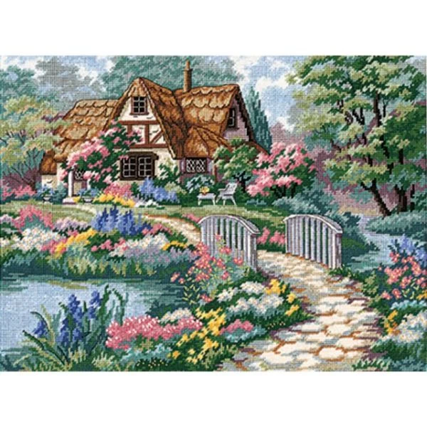 Dimensions Needlepoint Kit 16″X12″ – DIMENSIONS-Needlepoint Kit. Dimensions brings to you beautifully designed images in a vast variety of themes from baby to weddings, sympathy to inspirational and fun and quirky to seriously sentimental. This kit contains full color printed 12 mesh canvas, cotton embroidery thread, needle and easy to follow instructions. Mat/frame are not included. Finished size: 12x16in. Design: Cottage Retreat. Designer: Barbara Mock. Imported.