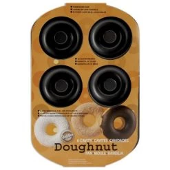 Doughnut Pan – Bake delicious doughnuts right at home with the help of this 6- cavity pan! This pan is non-stick and dishwasher safe so clean up is easy. A baked doughnut recipe is even included on the back of the packaging. This package contains one 8×12 inch pan. Imported.