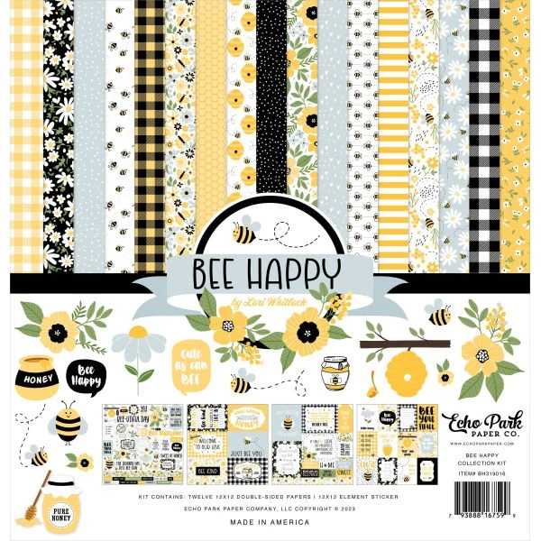 Echo Park Collection Kit 12″X12″ – Start your project off right with the perfect paper for scrapbook pages, greeting cards, bookmarks, gift cards, mixed media and much more! This package contains Echo Park Collection Kit<BR>- Bee Happy, 12 Double-Sided 12×12 inch pattern papers and one sheet of 12×12 inch cardstock stickers. Made in the USA.