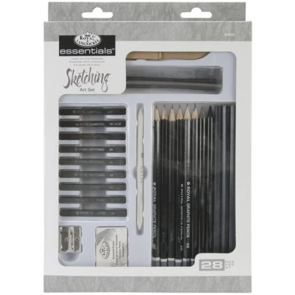 essentials(TM) Art Set – ROYAL BRUSH-Essentials Art Set: Sketching. This kit contains all of the essential items needed for sketching and creating great works of art! This package contains four vine charcoals, three charcoal sticks, six sketching sticks, one sandpaper block, one blending stump, one kneadable eraser, one pencil sharpener, three charcoal pencils, one woodless charcoal pencil, one woodless graphite pencil and six graphite pencils. Conforms to ASTM D 4236. Imported.