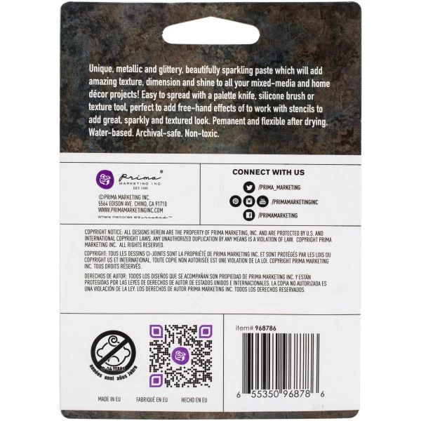 Finnabair Art Extravagance Jewel Texture Paste 100ml Jar – Unique, metallic and glittery this sparkling paste will add texture and dimension to all your mixed media projects and home decor projects. Easy to spread with a palette knife, silicone brush or texture tool. Package contains one 100ml jar of Finnabair Art Exravagance Jewel Texture Paste. Available in assorted colors, each sold separately. Imported.