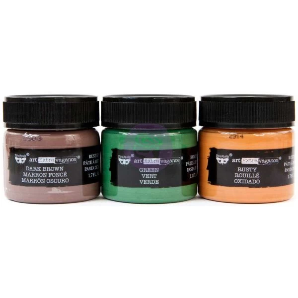 Finnabair Art Extravagance Rust Effect Paste 50ml Jars 3/Pkg – Perfect for creating rusty texture and adding dimension! This package contains three 1.7oz jars of rust effect paste in assorted colors. Conforms to ASTM D 4236. Imported.