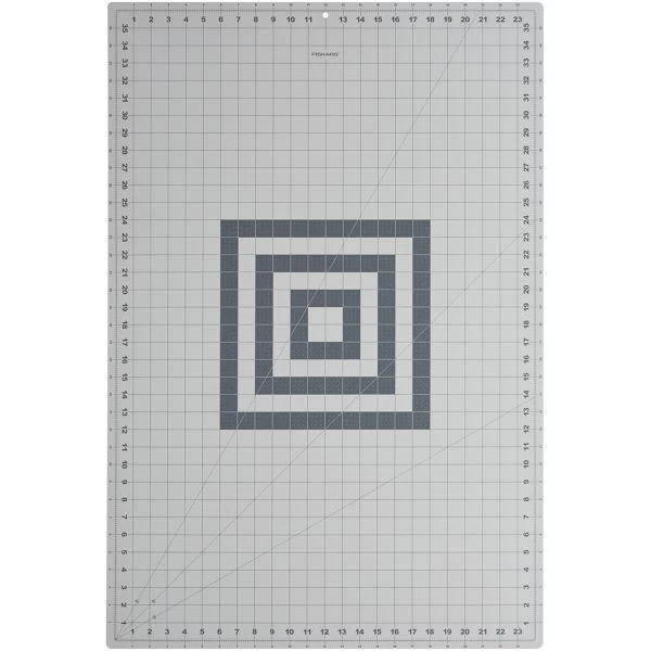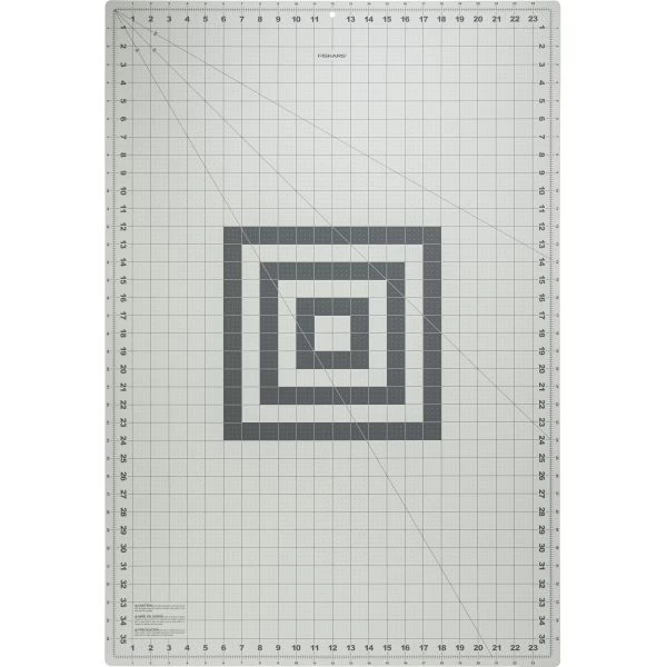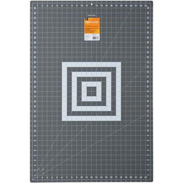 Fiskars Self-Healing Cutting Mat 24″X36″ – This mat is perfect for all your sewing, quilting and paper crafting needs. This package contains one 24×36 inch double-sided rotary cutting mat with gray on one side and white on the other. This self-healing mat features one inch grid with 30, 45 and 60 degree markings. Imported.