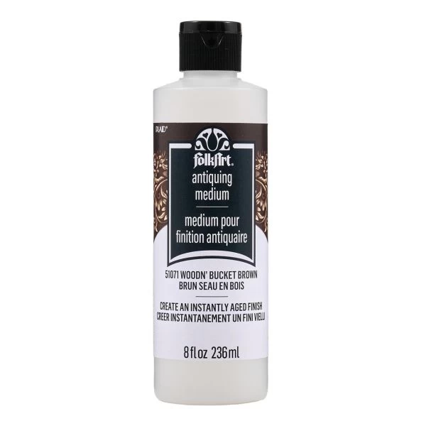 FolkArt Antiquing Medium 8oz – Great for staining, color washing, and faux finishing on all porous surfaces such as canvas and wood. This package contains one 8oz bottle of Antiquing medium. Water-based, non-toxic. Made in USA.