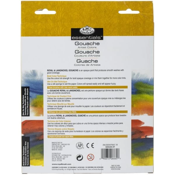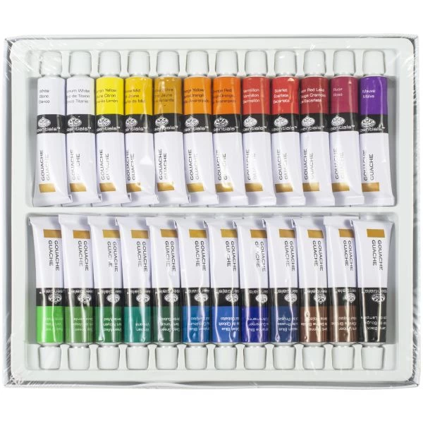 Gouache Acrylic Paints 12ml 24/Pkg – Royal Brush-Gouache Acrylic Paints: Assorted Colors. These paints have great opacity and reflective characteristics! Use the colors full strength for bold opaque coverage or mix them together for more color tins. This package contains twenty-four 12ml tubes of acrylic paints in assorted colors. Conforms to ASTM D 4236. Imported.