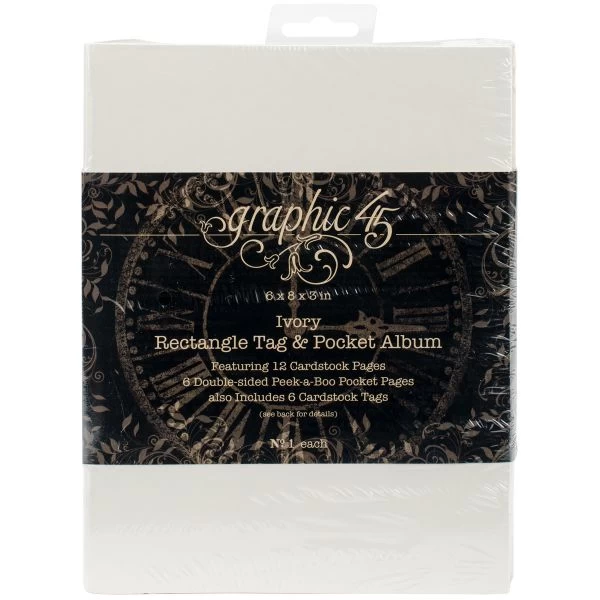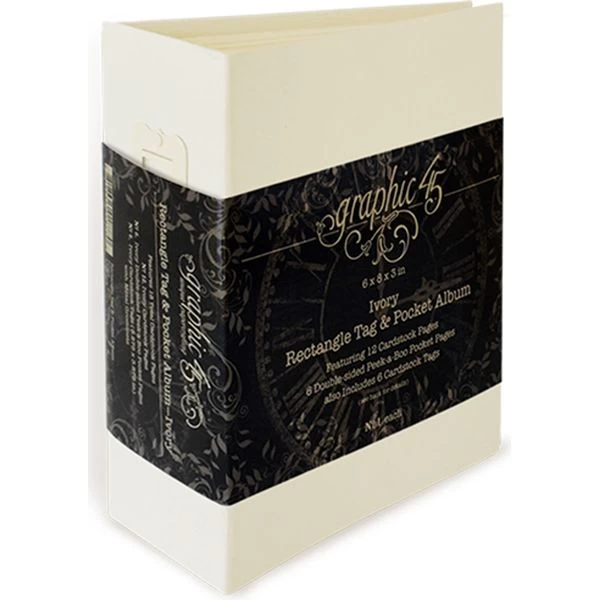 Graphic 45 Staples Tag & Pocket Album 6″X8″X3″ – The perfect album for showcasing your photos and more! Coordinates with the Deep Rectangle Matchbook Box (sold separately). This package contains Graphic 45-Staples Tag And Pocket Album Rectangle: Ivory, one 8x6x3 inch album with twelve cardstock pages, six double-sided peek-a-boo pocket pages and six 5-7/8×3-7/8 inch cardstock tags with metal grommets. Imported.
