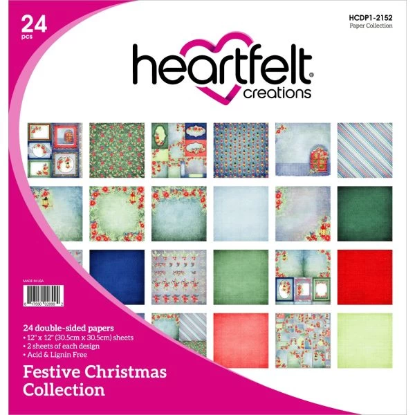 Heartfelt Creations Double-Sided Paper Pad 12″X12″ 24/Pkg – The perfect start to your next scrapbooking project! This package contains 24 double-sided 12 x 12 inch sheets (12 designs/2 each). Available in a variety of collections: each sold separately. Acid & lignin free. Paper weight: 65 lbs. Made in the USA.