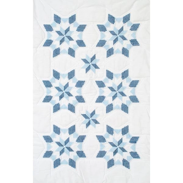 Jack Dempsey Stamped White Lap Quilt Top 40″X60″ – Jack Dempsey-Stamped White Lap Quilt Top. Create a beautiful wall or lap quilt using this great kit. The stitching designs have been stamped using ink that washes away with any liquid and the fabric is a cotton/poly blend broadcloth. This package contains one 40×60 inch wall/lap quilt, instructions for completion and care and a complete list of DMC floss requirements. Hoop, backing, batting, thread and needle sold separately. Design: XX Star. Made in USA.