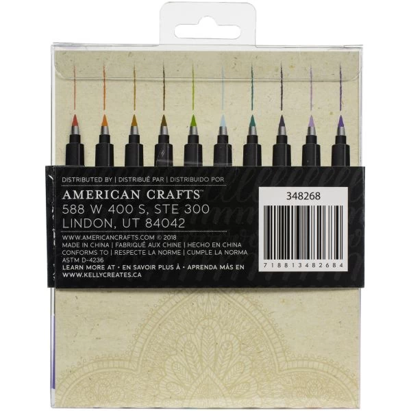 Kelly Creates Small Brush Pens 10/Pkg – A pen set that’s perfect for hand lettering! Whether you’re a beginner or a pro, these pens are perfect for you. This 4.6×6.2 inch package contains 10 petite brush pens. Imported.