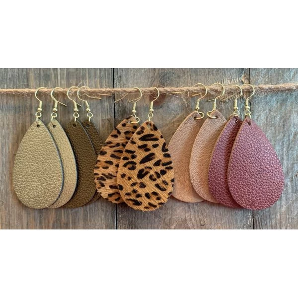 Leather Earring Kit – Use this kit to make five pair of leather earrings! The kit has everything you need. It comes with ten pieces of leather, two pieces in each coloration. Perfect for gift giving and sharing with friends! Use one or all to create to create a unique piece, designed by you! This 3×0.5×4.3 inch package contains ear wires with ball and coil design, jump rings, and leather pieces in tear drop shape (leopard print, tan, read, dar brown and metallic gold). Imported.