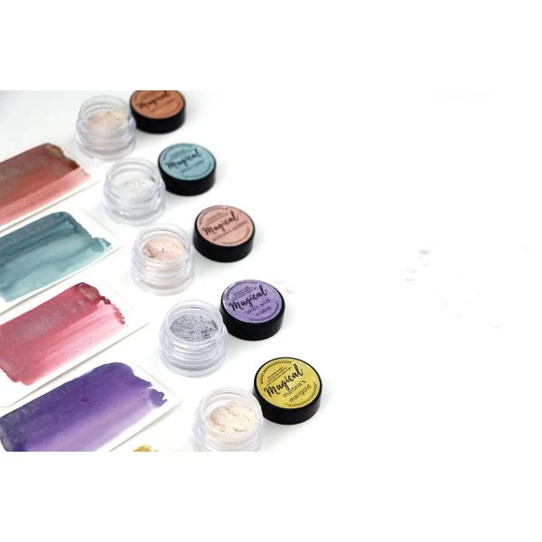 Lindy’s Stamp Gang Magicals .25oz 5/Pkg – Fabulously versatile for painting or coloring various mediums! Great for mixed media! This package contains five 0.25oz jars of powder that creates custom paint, paste or gel depending on whether you add to water or medium. Comes in a variety of colors. Each sold separately. Made in USA.