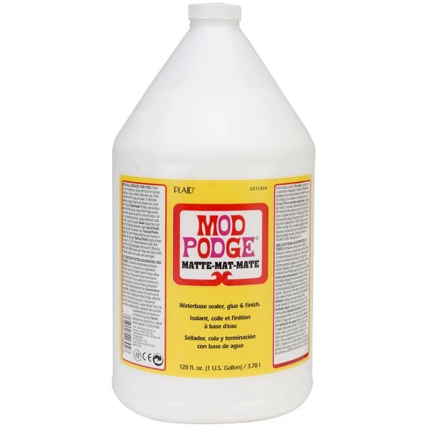 Mod Podge Matte – PLAID:CRAFT-Mod Podge Matte. Use this product for a variety of crafting projects! Use it with your favorite Mod Podge molds and more. This package contains 1 gallon of mod podge. Finish: Matte. Conforms to ASTM D 4236. Made in USA.