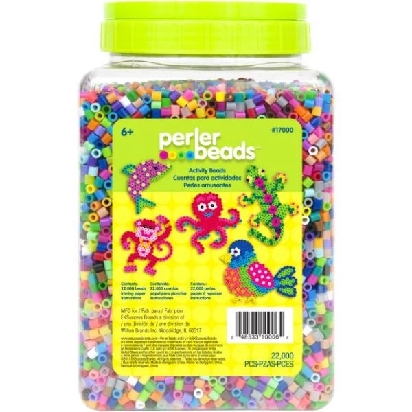 Perler Fused Beads 22,000/Pkg – This huge 5.5x6x5.5 inch jar holds 22,000 activity beads in a vast variety of colors in both transparent and solid styles, ironing paper as well as complete instructions. All beads are made of LDPE: a food-grade plastic containing no harmful chemicals. Recommended for children ages 5 and up. WARNING: Choking Hazard-small parts. Not for children under 3 years. Made in USA.