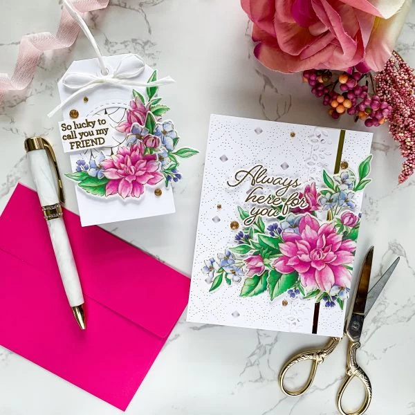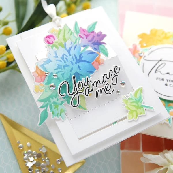 Pinkfresh Studio Stencils 4″X9″ 6/Pkg – 6 piece layering stencil set made to coordinate with the Artistic Dahlia stamp set, and Artistic Dahlia dies. There is also an Artistic Dahlia washi tape available in the product suite. There is a separate stencil for each layer, with guidelines on each stencil for perfect alignment to a 3.625x 8.625 inch cardstock panel when using alone. When using the stencils with the stamped image you will forego the alignment guides, and instead align each layer to the stamped image. Use them without the stamped image for a soft, no-line coloring feel. Use the coordinating stamp to add more detail to the image by stamping with detail black, or heat embossing in your favorite powder for added shine. Imported.