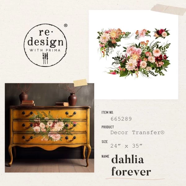 Prima Marketing Re-Design Decor Transfers 24″X35″ – Transform your furniture and decor with our elegant ‘Dahlia Forever’ Decor Transfer(R). This transfer features a beautiful floral arrangement with stunning pink and burgundy dahlias, luscious greenery, and wispy vines. Measuring 24×35 inches, it is perfect for adding a touch of elegance to your furniture, walls, and more. Decor Transfers(R) are incredibly easy to use. Simply peel off the backing paper, place the transfer onto your desired surface, and rub it with the included tool to transfer the design. The transfer can be cut and rearranged to fit your specific needs, making it a versatile and customizable choice for all your Decor projects.