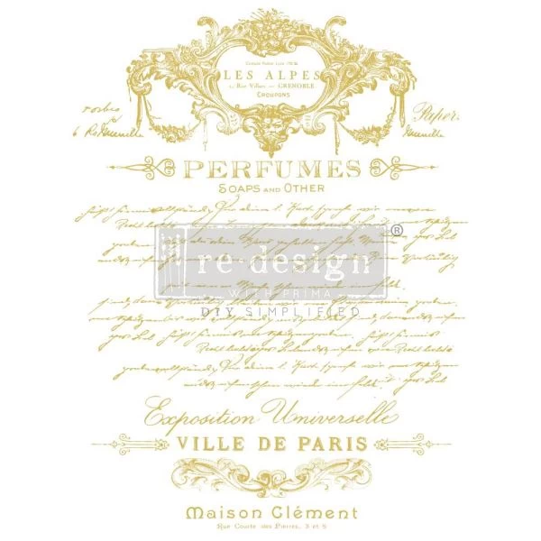 Prima Marketing Re-Design Gold Foil Kacha Decor Transfers – Kacha(R) brings timeless elegance to the table with four new, gorgeous, gold foil Decor Transfers(R) to add a touch of GLAM to your next piece! Introducing the stylish ‘Perfume Notes’ Decor Transfer(R) by the one and only KACHA(R)! Measuring 18 x 24 inches, this stunning script design transfer adds a touch of French sophistication to any home decor project! Kacha is known for her elegant and feminine designs, and the ‘Perfume Notes’ Decor Transfer will add a touch of French decadence to your next piece.