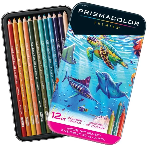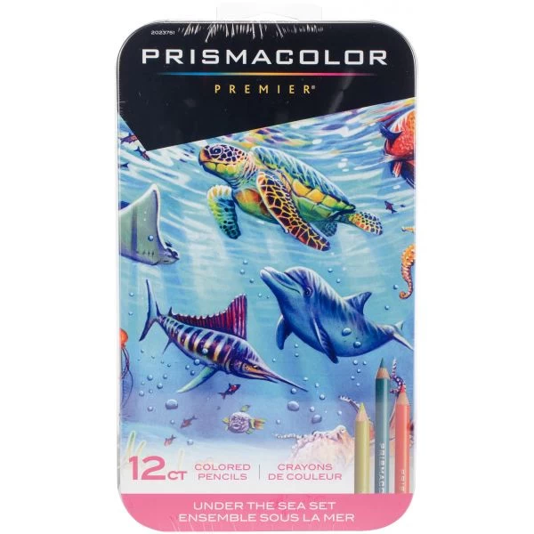 Prismacolor Under The Sea Colored Pencil Set 12/Pkg – These high quality pencils will elevate your coloring experience! The soft, thick cores create a smooth color laydown for excellent blending and shading. This package contains 12 colored pencils within one 4.5x8x.5 inch storage tin. Conforms to ASTM D 4236. Imported.