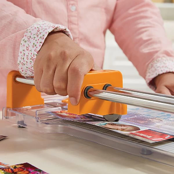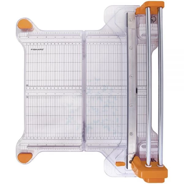 ProCision Rotary Bypass Trimmer 12″ – Perfect for mixed media projects! The self-sharpening blade never needs replacing. Cut through chipboard, cork, burlap paper, vinyl, foam and layers of cardstock. This package contains one precision rotary bypass trimmer with a paper guard, a rotary bypass blade carriage, measurements in metric/inch measurements, an expanded grid by 2-1/2 inches, rubberized feet, a paper guard lock, a permanent grid and a folding deck for easier storage. Measures approximately 14-1/2×19- 1/2×4 inches when folded out to full length. Do not carry from cutting bar (will bend over time). Imported.