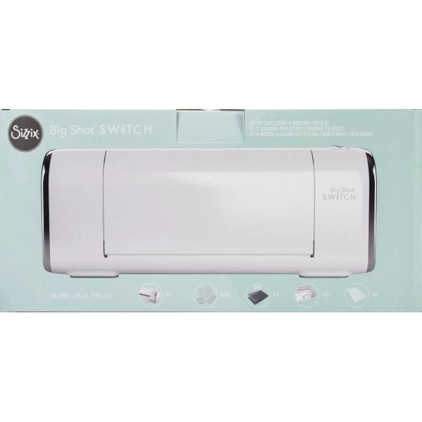 Sizzix Big Shot Switch Plus Starter Kit (US Version) – Advance your makes with the Big Shot Switch Electric die-cutting machine! This contemporary high-gloss machine with stylish chrome accents has a simple two button system and automatic feed and reverse feature, empowering you to effortlessly die-cut at the touch of a button. This 17.5x8x9 inch package contains one machine, one pair of cutting pads, one platform, one Adapter A, one Adapter B, one instruction booklet, 24 Thinlits Dies and one 3-D Textured Impressions Embossing Folder. Imported.