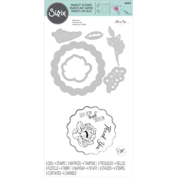 Sizzix Framelits Die & Stamp Set By Olivia Rose 6/Pkg – This fabulous floral Window Box Framelits Die Set with Stamps by Sizzix Designer, Olivia Rose is just perfect for spring and summer crafting. The foliage and floral cut outs can be used to create a standalone design or you can pair it with the Sizzix Circle Shaker Panes (665448) and some of the pretty Sizzix sequin and bead sets to create some cute Birthday card designs, some thoughtful Thank You gift wrap or even as part of a journaling project. You can even personalize your projects with the included sentiment stamps, some colored inks or even some of the Sizzix Embossing Powder collection.