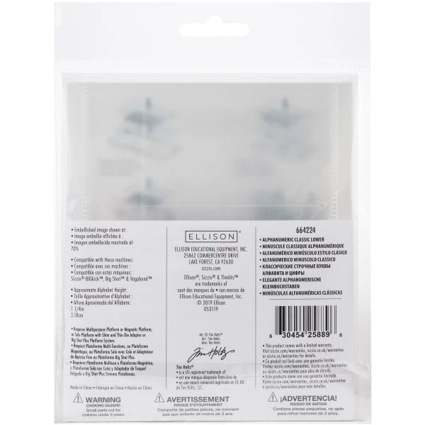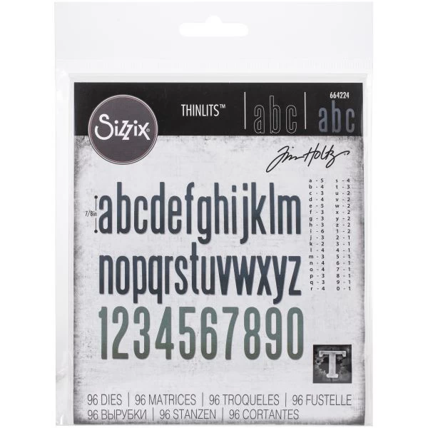 Sizzix Thinlits Dies By Tim Holtz 96/Pkg – Thinlit dies offer a variety of affordable solo options or multi die options. Thinlits are easy to use and are compact and portable. These dies are compatible with Sizzix BIGkick, BigShot, and Vagabond. This package contains Alphanumeric, Classic Lower: a set of 96 metal dies. Approximate alphabet height: 1.25 inches. Designer: Tim Holtz. WARNING: Choking Hazard. Not suitable for children under 3 years. WARNING: Cut Hazard, Sharp Blade. Contact may result in injury. Always keep blades away from fingers and body. Handle with Care. Keep out of reach of children. Imported.