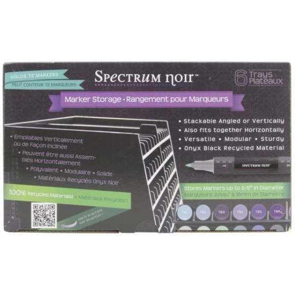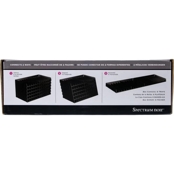 Spectrum Noir Marker Storage Trays Black 6/Pkg – Empty – This modular system can be customized to your personal space! There are three different ways to build: horizontally, vertically or angled. This storage tray will accommodate most markers including specialist markers. This package contains one Noir marker storage with six trays (holds seventy-two markers up to 5/8 inches in diameter). Imported.