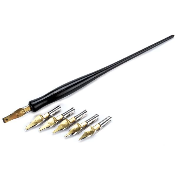 Speedball C Style Lettering Set – SPEEDBALL-C Style Lettering Set. Calligraphy pen and nib set designed for Flat Roman, Italics, and Text Letters. Contains: black plastic pen holder, and nibs: C0, C1, C2, C3, C4, and C5. Made in USA.