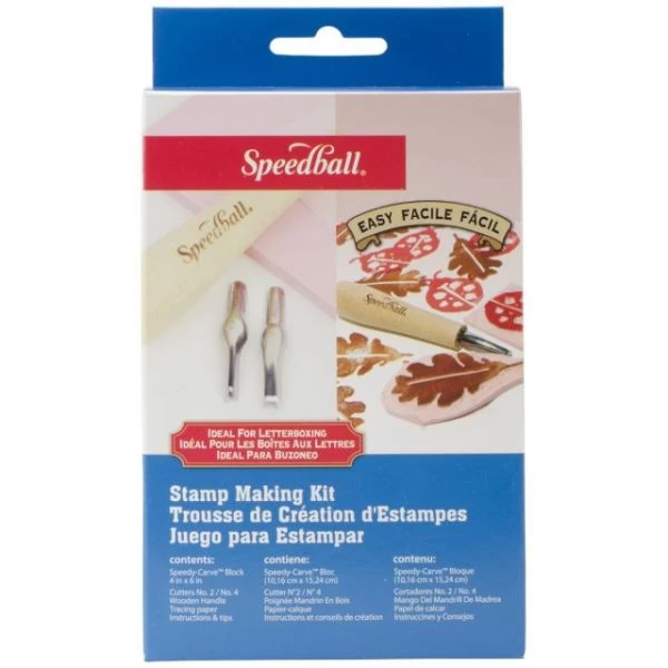 Speedball Stamp Making Kit – SPEEDBALL-Speedy Carve Stamp Making Kit. Turn your most treasured sketch into a stamp! Use leaves, flowers and much more as naturals stencils to create unique high quality rubber stamps that will last for years. You can use a slightly warm iron to transfer images of pencil drawings, newsprint and freshly printed ink jet and laser print images. This package contains one 6x4in easy to cut, flexible and non-crumbling 1/4in thick sheet of pink speedy carve rubber (for use only with water soluble products), one wooden handle, one #2 V-shaped line cutter tip, one #4 U-shaped gouge tip, tracing paper and instructions including several started templates and a complete alphabet. Imported.